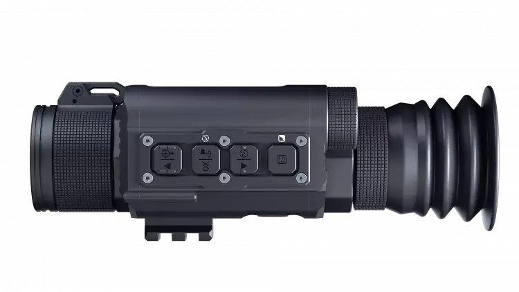 Функции. «Картинка в картинке (PiP) — для детализации без потери поля зрения. Hot Track — для обнаружения и отслеживания самой горячей «точки». Электронный компас и гироскоп — для контроля направления, угла наклона и бокового завала. Видеорекордер с микрофоном. Запись фото и видео со звуком или без звука, автоматическая запись выстрела с активацией в момент отдачи. Файлы сохраняются память прибора (32 ГБ), переносятся на ПК (USB-C). Wi-Fi 2,4 ГГц. Подключение к смартфону / планшету через приложение Roadcam/Okcam в качестве внешнего видоискателя или видеокамеры. Обновление ПО (через USB-интерфейс).