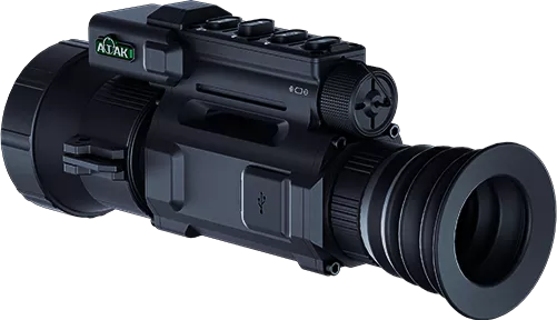 Тепловизор ATAK OT22 является цифровой камерой для наблюдений в тепловой части спектра 8-14 мкм и может устанавливаться на охотничье оружие. Способен записывать фото/видео со звуком на внутреннюю память 32 Гб и передавать видео сигнал по Wi-Fi и через USB-C кабель.