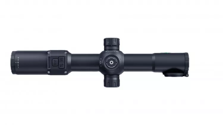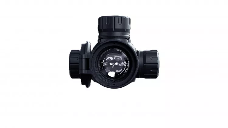 Форм-фактор — как у дневного прицела с компактным 30-мм корпусом и тремя барабанами: верхний — энкодер, левый — ручка фокусировки объектива, правый — батарейный отсек под элемент питания 18650. Понравится тем, кто предпочитает классику и хочет аналогичный дизайн для ночной охоты — чтобы легко менять прицелы и не менять крепления.