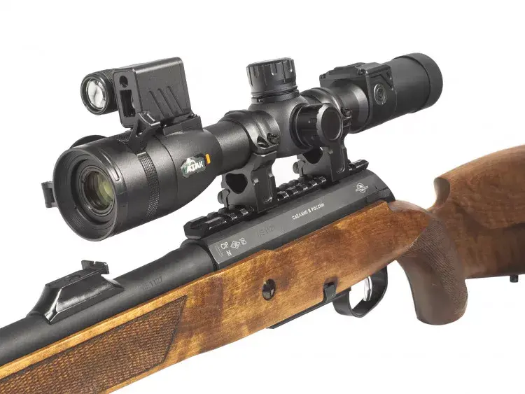 Встроенный дальномер и баллистический калькулятор позволяют точно рассчитать поправку на дальность даже в темноте, без внешних устройств и подсчётов вручную. Дальномер измеряет расстояние до цели (до 1000 м), программа-калькулятор автоматически подставляет результат замера в стрелковый профиль — и корректная поправка выводится прямо на сетке. Профили (5 штук) можно настроить заранее, что ускоряет процесс настройки на месте и позволяет охотнику быстро адаптироваться к меняющимся условиям.