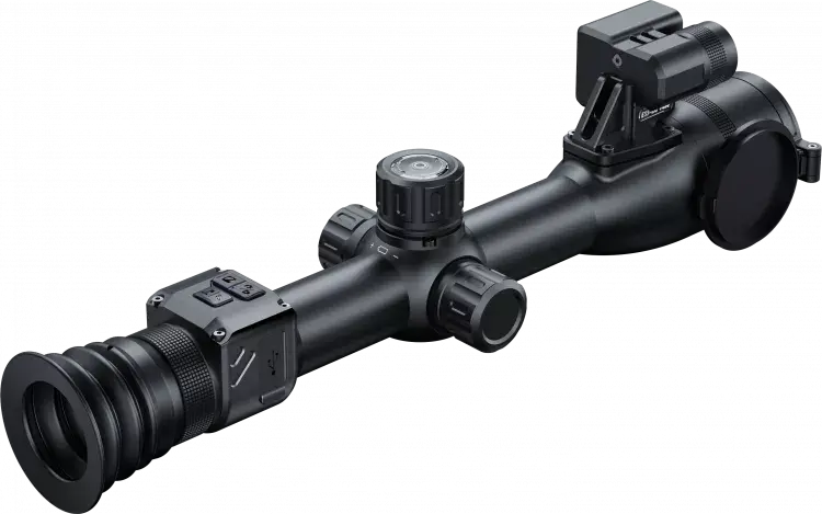 Управление — как у цифровой оптики. Состоит из 3 модулей: энкодера, 3-кнопочной панели на окуляре (для быстрых режимов и работы в Меню) и отдельно вынесенная на корпус кнопка питания. Кнопки прорезиненные, с удобным доступом как слева, так справа; нажимаются со звуком или бесшумно — для работы в любых условиях.