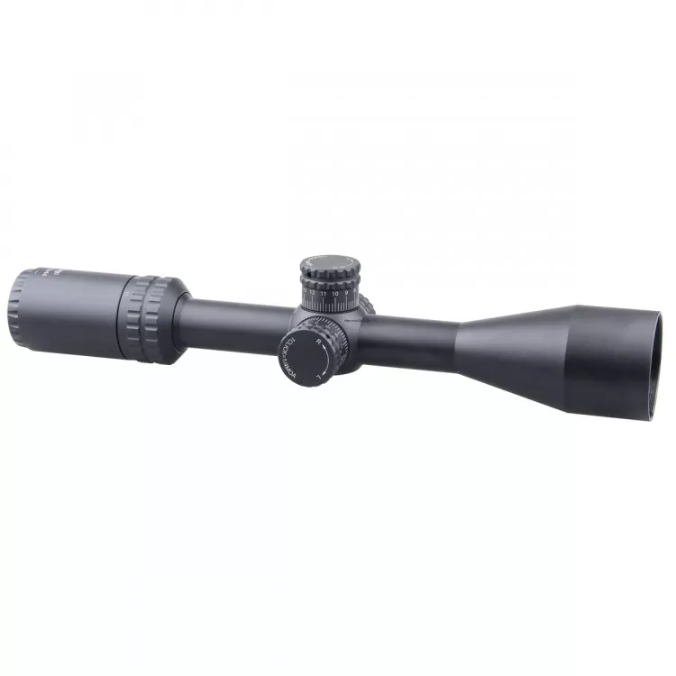 Прицел Vector Optics HUGO 3-12x44 SFP — недорогой «универсал» с классическим дюймовым корпусом, простой BDC-сеткой, тактическими барабанами и поправками в MOA. Подходит для охоты, спортивно-тренировочной стрельбы на ближних и средних дистанциях при дневном свете. Совместим с огнестрельным оружием калибра .308 Win, PCP и пружинно-поршневой пневматикой.